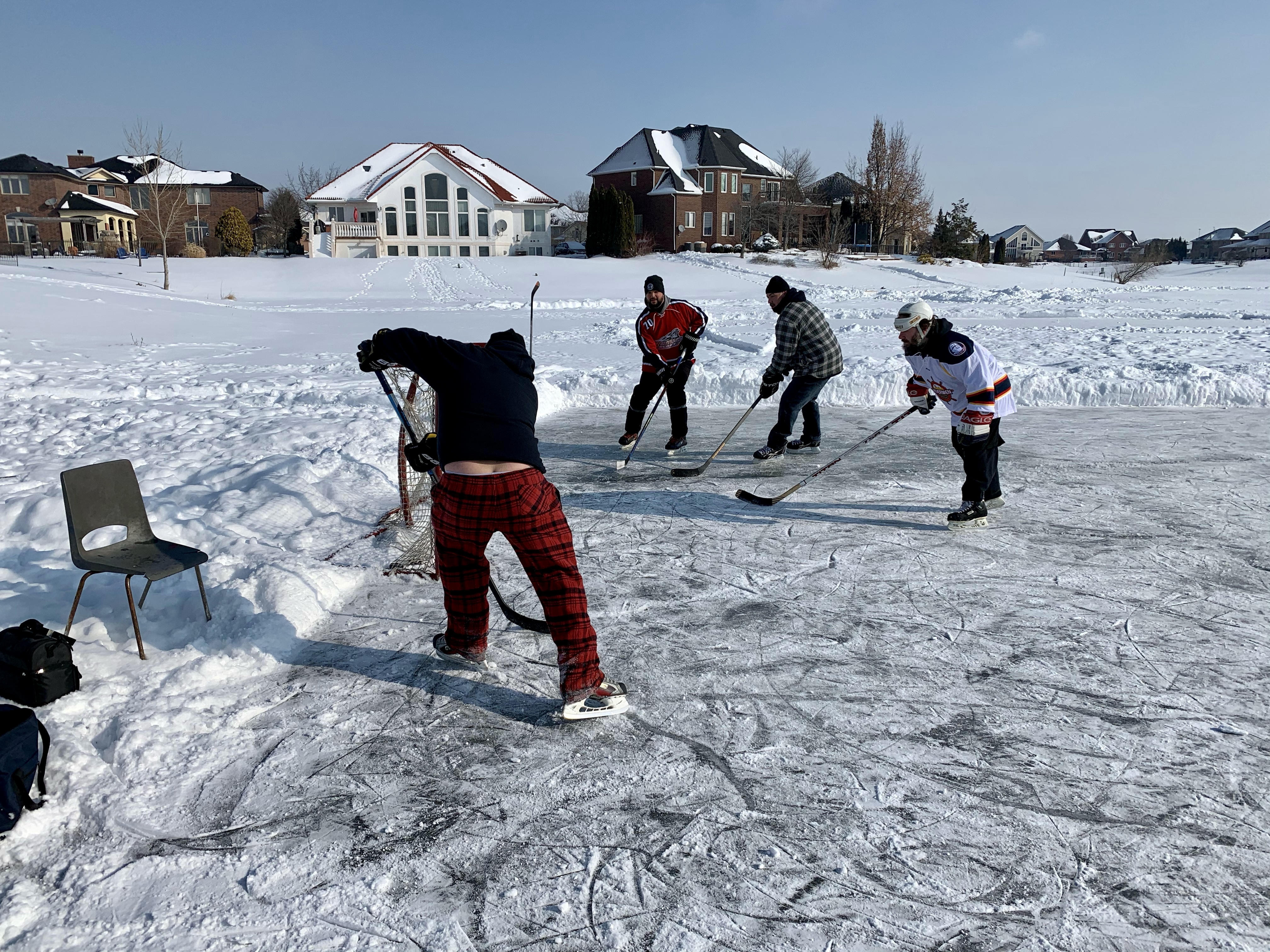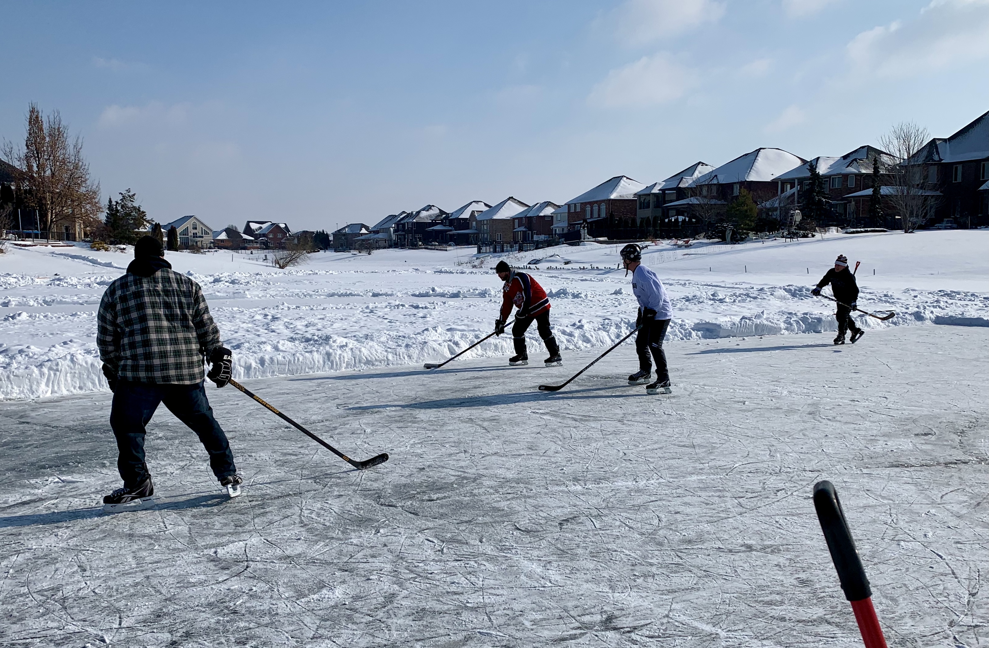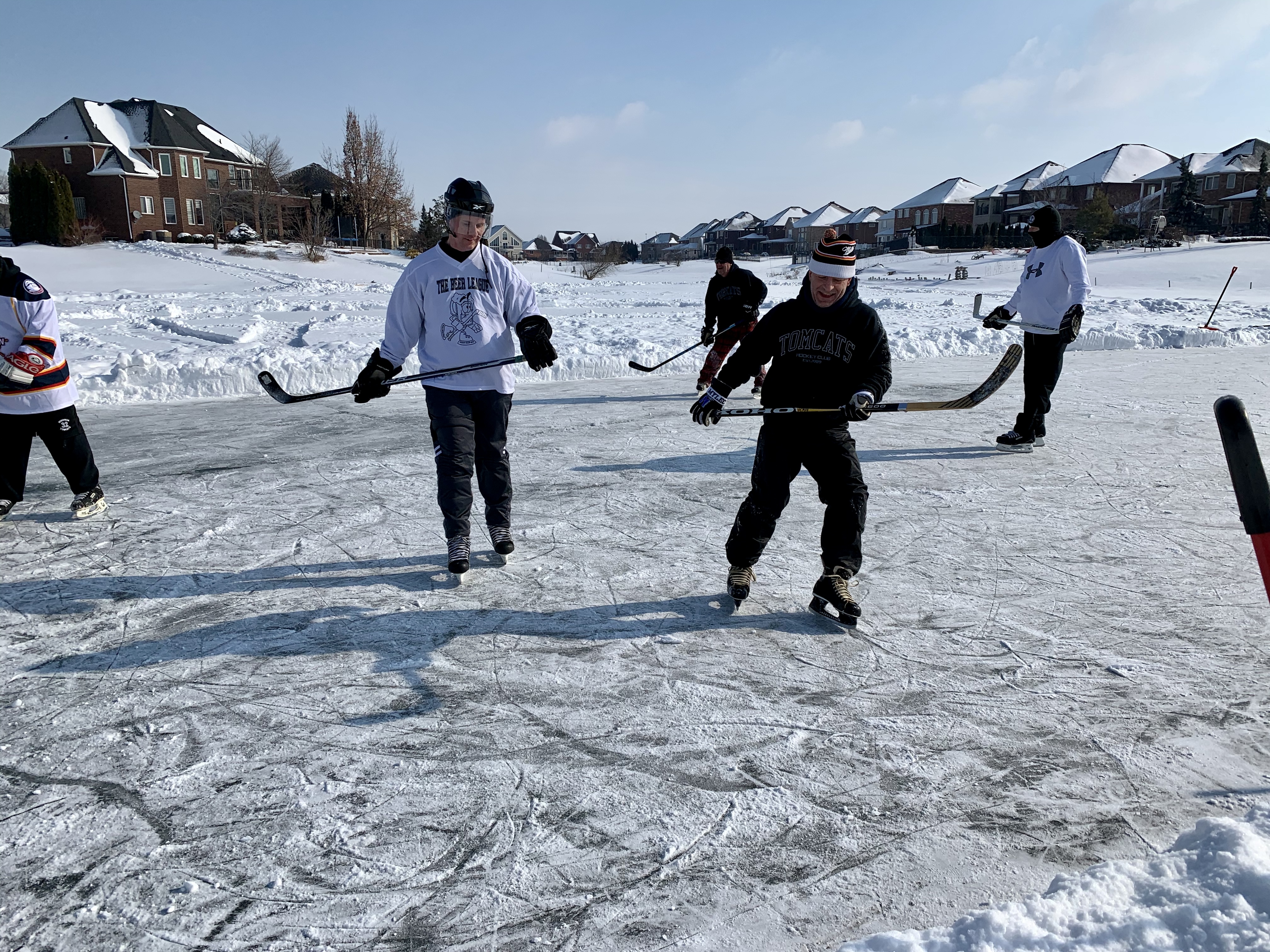 The Tomcat Winter Classic did not disappoint. Thanks to May Day, Chevy and Labamba for finding a great venue, and for preparing the surface ahead of the event. Labamba came up with a Tomcat version of the Zamboni to help smooth out some rough patches in the natural ice. We now will call him Zambamba! Despite these best efforts, the occasional ice crevasse would send a Tomcat or two tumbling, resulting in a good laugh by all. PS – No Tomcats were injured during the making of the Winter Classic. We were also introduced to the son of Junior…Jr. Junior. Jr. Junior was definitely a planted ringer by the wiley ole’ Junior. The rest of the Tomcats all wished we had the energy and stamina of the young Junior…Tomcats are reportedly in talks for a Rookie contract for the young man.